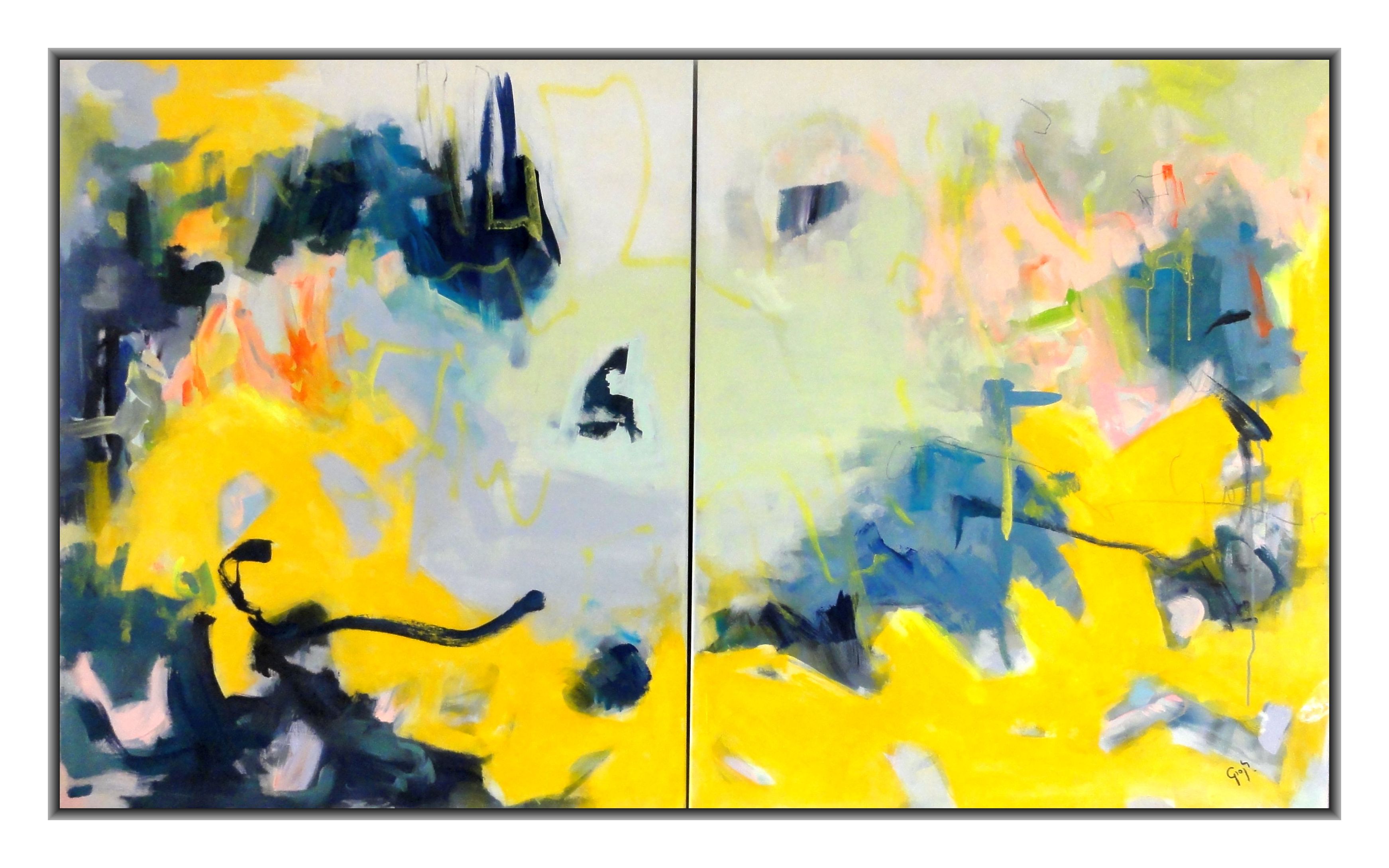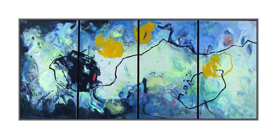 Acrylic/ canvas, hand-woven old linen, size 120 x 280 cm, 4 parts. |